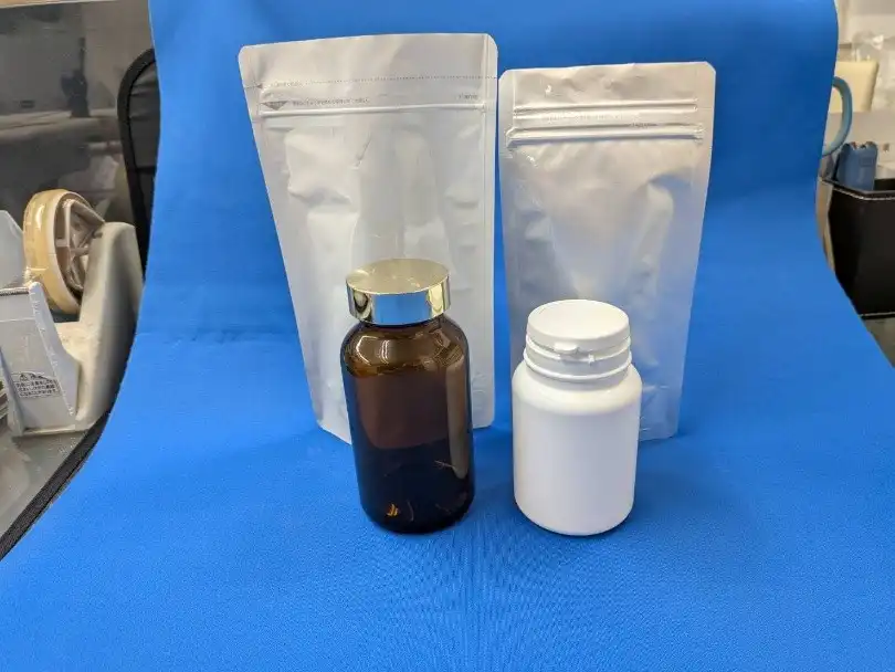 セットアップ工程とは、錠剤やカプセル・個包装した分包などを、パッケージ袋・ボトル・化粧箱などに規定した数量を入れ、商品として完成させる工程です。弊社ではお客様のご要望に合わせた形状でセットアップを行い、賞味期限の印字やシュリンク包装も行っております。